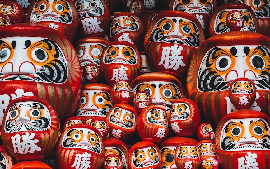 El Daruma es un muñeco tradicional japonés que representa la perseverancia. Cuando se adquiere uno, sus ojos están en blanco. La costumbre consiste en pintar uno de ellos al marcarse un objetivo concreto, ya sea personal, académico o profesional.